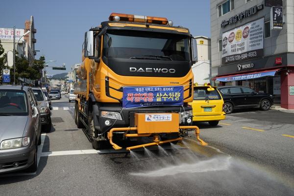 이번 살수는 도로변 미세먼지 제거로 대기질 개선은 물론 시가지의 열섬효과를 완화시켜 쾌적하고 깨끗한 도로환경을 제공하고 폭염으로 도로가 솟아나는 '블로우 업' 현상 등 도로변형을 방지해 안전사고를 예방하는데 도움이 되고 있다.