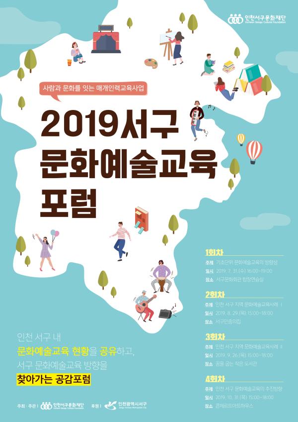 7월부터 시작한 서구문화예술교육포럼은 총 4회가 추진되며, 8월부터 10월까지 매월 마지막 주 목요일에 개최된다. 서구 내 문화예술교육을 수행하는 단체 및 기관의 실무자가 참여하여 다양한 사례를 공유하는 시간을 갖는다.