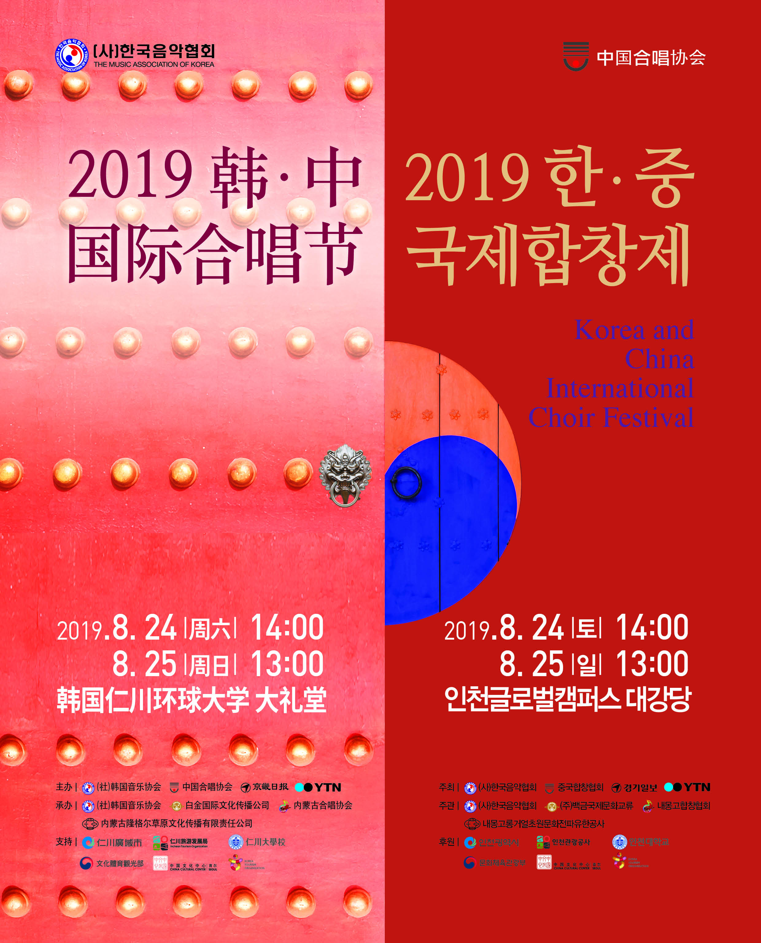 올해로 3회를 맞는 ‘2019 한·중국제합창제’는 한국음악협회, 중국합창협회, YTN, 경기일보가 주최하며, 인천광역시와 인천관광공사가 후원한다.