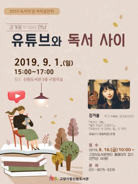고양시 신원도서관은 독서의 달을 맞아 오는 9월 1일 일요일 작가와의 만남 ‘유튜브와 독서 사이’ 프로그램을 진행한다.