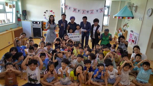 이날 강상어린이집에서 치러진 성금 전달식에는 강상면장 외에도 이장협의회장, 새마을회장, 행복돌봄추진단장이 참여하여 아이들의 기특한 마음을 칭찬하였으며 기부를 통해 아이들이 아나바다 정신과 지역사회의 일원으로 나눔을 실천하는 주체가 되기를 응원했다.