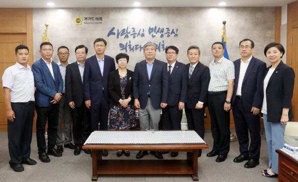 송한준 경기도의회 의장이 13일 오전 의장 접견실에서 중국 산둥성 룽청시 방문단을 맞아 의회와 산둥성 간 교류협력 방안을 논의했다.