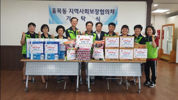율목동은 지난 7일 율목동행정복지센터에서 지역사회보장협의체 위원이 참석한 가운데 ‘율목愛꾸러미’ 기탁식 행사를 가졌다.
