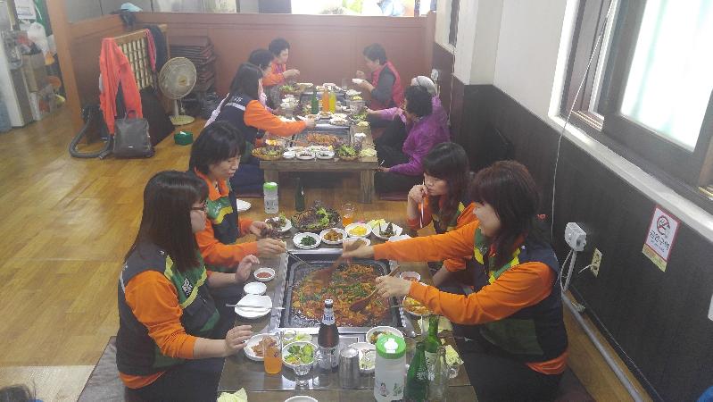 거동이 불편하신 어르신들을 경로당에서부터 식당까지 한분 한분 모시고 가는 번거러움도 마다하지 않고 항상 웃는 얼굴로 어르신들의 말벗이 되어 주었으며, 식사 중에도 어르신들과 화기애애한 분위기는 계속 이어졌고 어르신들도 딸 같은 주부민방위기동대원들과 식사를 함께 하는 게 기분이 좋아보였다. 식사를 마친 후 어르신들을 경로당까지 모셔다 드리는 것도 잊지 않았다.