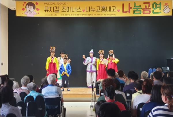 포천종합사회복지관, 포천여자중학교, 포천중학교가 공동 운영하고 있는 뮤지컬팀 조이너스가 지난 12일 지역사회를 위한 나눔공연을 펼쳤다.