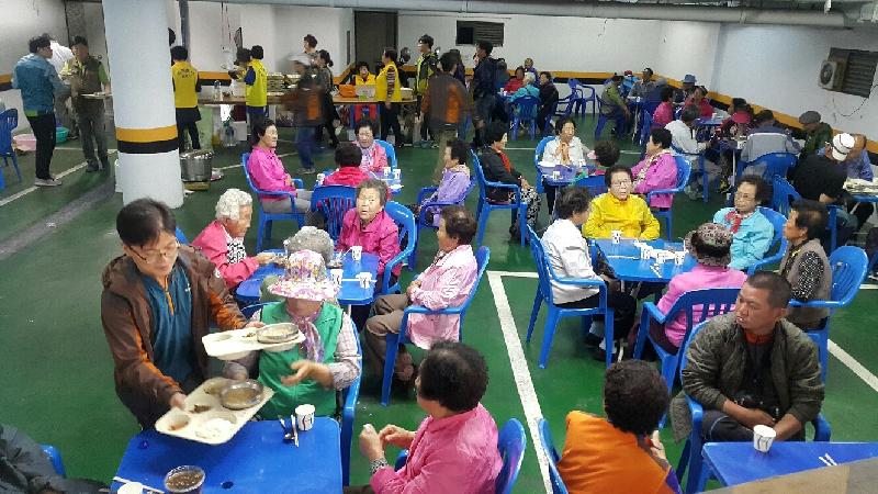 이날 무료급식봉사 활동은 정량동 자원봉사협의회가 매달 15일, 30일 실시하는 행사로 5월 가정의 달을 맞아 통영시 세무공무원으로 구성된 모임(이하 세정회)회원 27명이 참여하여 결식노인들의 따뜻한 식사 한 끼를 위해 일손을 도왔다.
