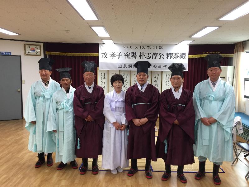 | 통영시 도천동에서 5월 16일(월) 11시, 지역주민 등 70여명을 모신 가운데 ‘고 효자 밀양 박지순공 석다례(故 孝子 密陽 朴志淳公 釋茶禮)’를 봉행했다.(사진=통영시청 제공) |