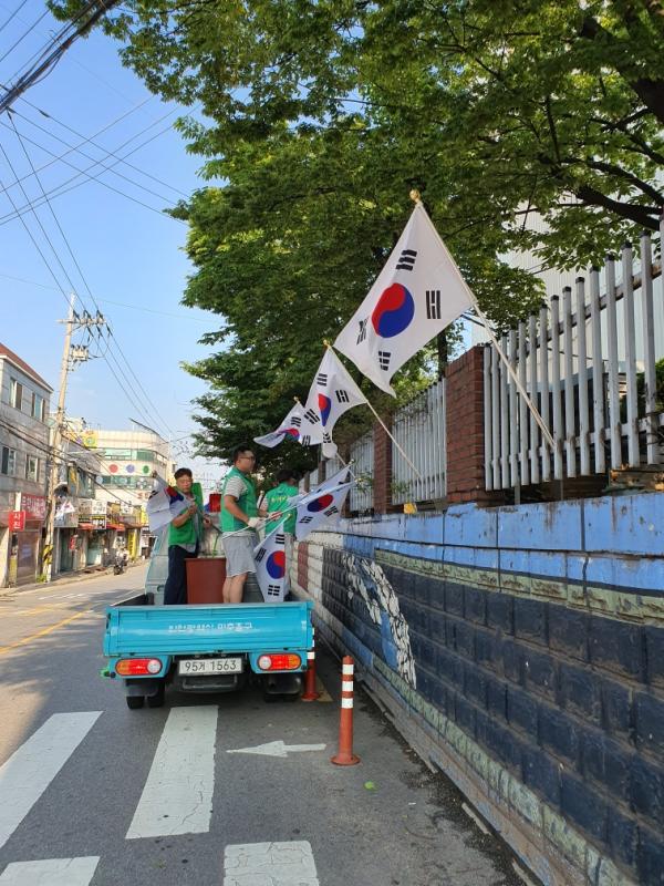 인천광역시 미추홀구 문학동 새마을협의회와 새마을부녀회가 제74주년 광복절을 맞이해 지난 13일 문학구길 일대 약 1.2km 구간에 태극기 가로기를 게양했다고 14일 밝혔다.