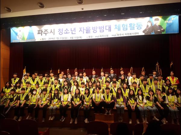 파주시 자율방범기동순찰연합대는 지난 15일 시민회관 소공연장에서 ‘청소년 자율방범대 수료식’을 개최했다.