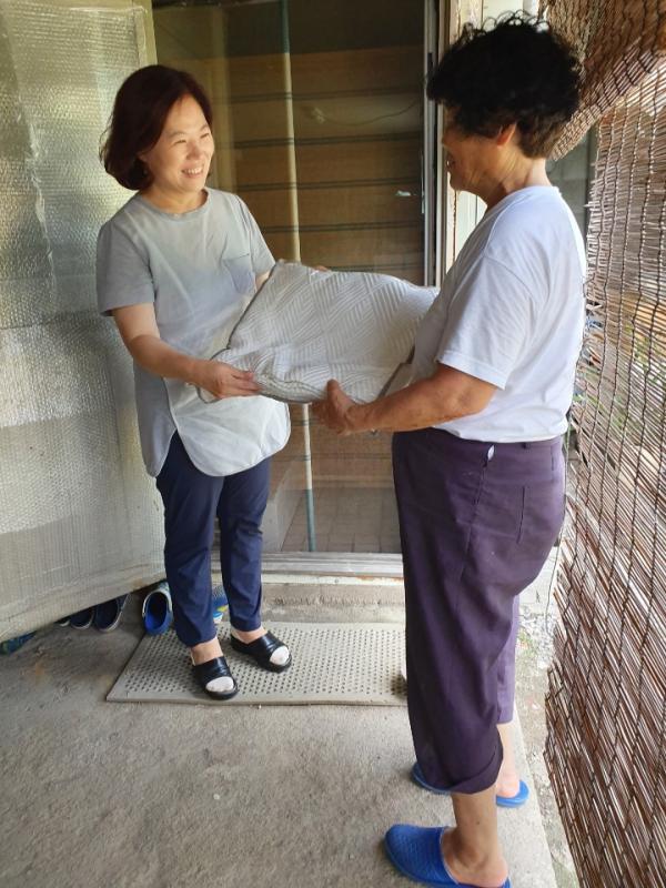 이날 이불을 전달받은 어르신은 “나에게 꼭 필요한 것이다. 요즘 장마랑 폭염이 계속되어 밤에 잠을 제대로 못자고 힘들었는데, 덕분에 시원하게 잠을 잘 수 있을 것 같아서 감사하다.”고 말했다.