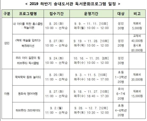 부천시 송내도서관은 오는 20일부터 성인·아동 대상 하반기 독서문화 프로그램 참여자를 모집한다고 16일 밝혔다.