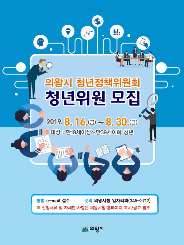 의왕시는 새롭게 구성되는‘의왕시 청년정책위원회’에 참여할 청년위원을 오는 30일까지 공개 모집한다.