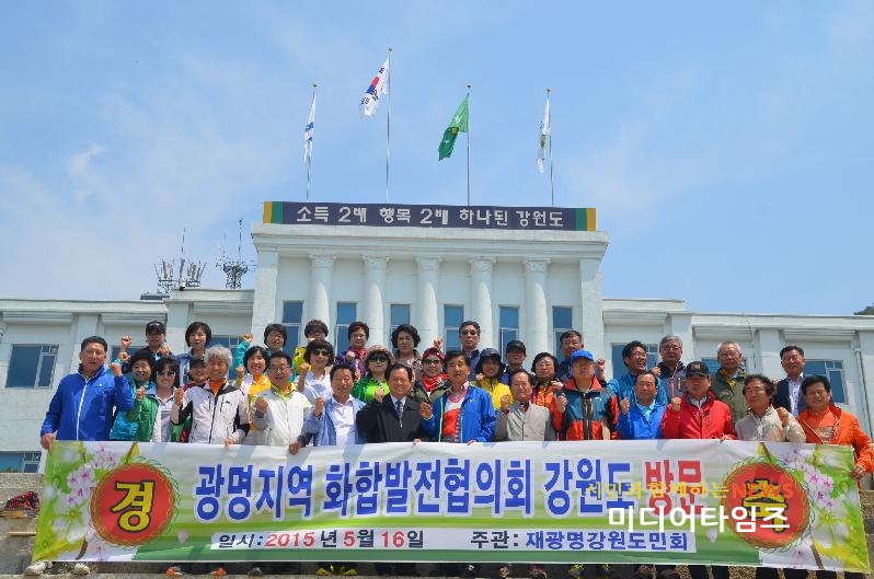 한편, 강원 도지사를 대신해 유재붕 총무행정관은 강원도청 방문 환대 격려사에서 “소중한 시간을 내어 자리를 함께 해 주신 광명 화합 발전협의회 회원님 분들께 감사의 인사를 드리며, 강원도 최대 현안인 2018년 평창 동계올림픽에 많은 홍보를 부탁드리며 대회 기간 중에 많은 참관을 부탁드린다“라고 했다.