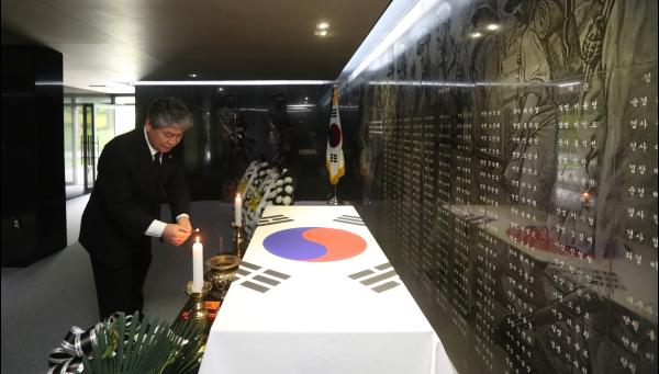 송한준 의장은 이날 오전 수원시 현충탑을 참배하고 순국선열 및 호국영령의 넋을 기리며 “1,350만 경기도민은 광복의 역사를 기록하고 기억하겠다”는 메시지를 방명록에 담았다.