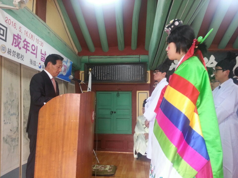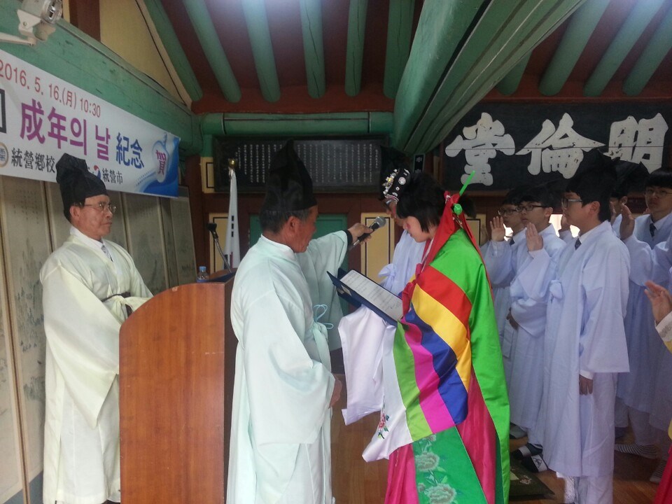 통영향교 송기완 전교는 “성년례를 통하여 성년이 되는 젊은이들이 전통문화에 대한 긍지와 자부심을 깨닫고 건전한 사회의 일꾼으로 성장하길 바란다.”고 말했다.