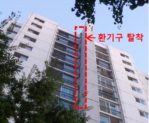 지난 18일 오후 수원 권선구 A아파트단지 한 동의 환기구조물에 탈착이 발생해 해당 동에 거주하는 주민들이 긴급 대피했다.