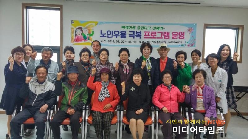 [미디어타임즈 = 최귀복 기자] 통영시보건소(소장 박주원) 정신건강증진센터에서는 노인들의 우울 증상을 해소하여 삶의 만족도를 높이고 행복한 노년생활을 영위 할 수 있도록 하기위해 지난 3월 29일부터 5월 16일까지 총 12회기 동안 『백세인생 즐겁다고 전해라~』 라는 슬로건을 내걸고 노인우울극복 프로그램을 운영했다.