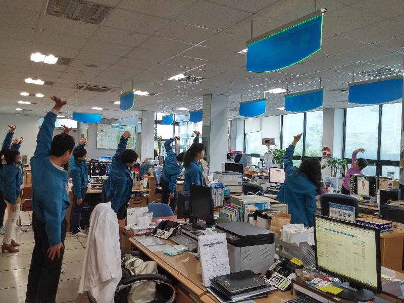 | 지난 16일 오전 8시 40분부터 20분간 홍익웃음경영연구소 이상헌 소장을 강사로 초빙하여 전 직원을 대상으로 ‘웃음으로 시작하는 친절하고 청렴한 상문동 만들기’를 위한 교육을 실시 하고있다.(사진=거제시청 제공) |