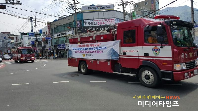 [미디어타임즈 = 최귀복 기자] 거제소방서(서장 김용식)가 지난 16일(월), 고현종합시장 등 거제시 주요 6개 지점에서 민방위 훈련과 연계한 전국단위 국민참여 소방차 길터주기 행사를 실시했다.