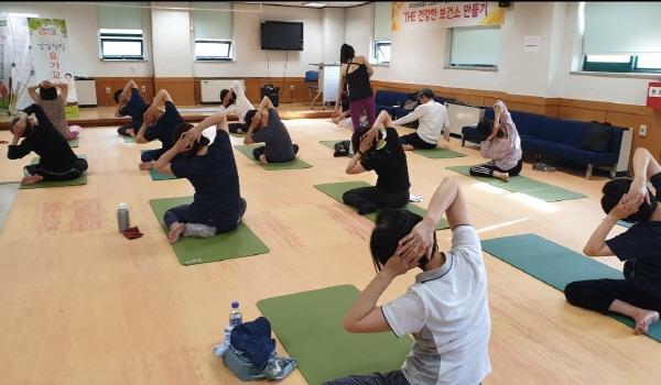 격렬한 운동이 힘든 대상자를 위해‘건강힐링 요가교실’도 운영하며, 65세 이하 주민이면 누구나 참여할 수 있다. 주2회 진행하며, 몸의 유연성과 근육의 발달 및 체력향상에 도움이 되는 요가프로그램 중심으로 운영된다.