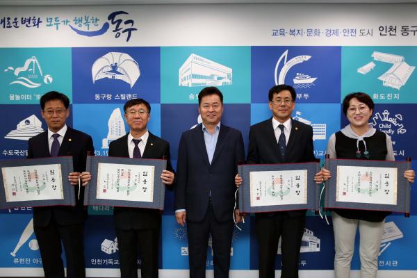 인천 동구는 19일, 5급 사무관 승진 공직자 4명에게 교지 형식의 승진 임용장을 수여해 눈길을 끌었다.