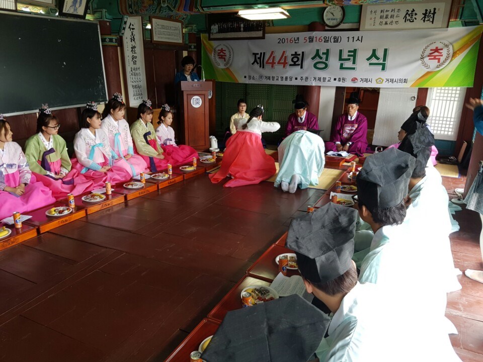 [미디어타임즈 = 최귀복 기자] 거제시(시장 권민호)는 지난 16일, 제44회 성년의 날을 맞이하여 전통 성년례를 (재)거제향교 주관으로 성년자와 내빈 및 유림 등 100여 명이 참석한 가운데 거제면 소재 거제향교에서 개최했다.