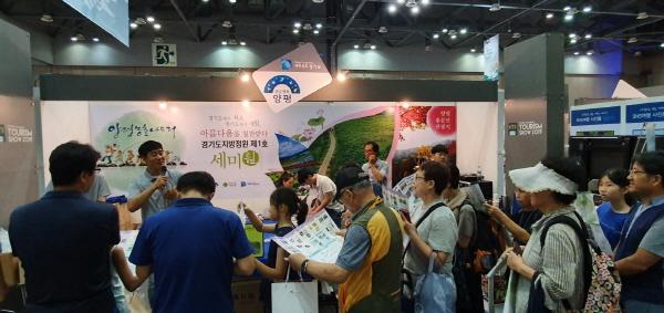 군은 지난 6월 경기도 지방정원 제1호로 선정된 세미원을 비롯해 용문산관광지, 농촌체험마을, 맑은숲캠프, 들꽃수목원, 레일바이크 등 양평군 주요관광지 홍보와 상담·마케팅 및 체험 시식 분야를 마련해 관람객들에게 다양한 볼거리와 즐길 거리로 큰 호응을 받았다.