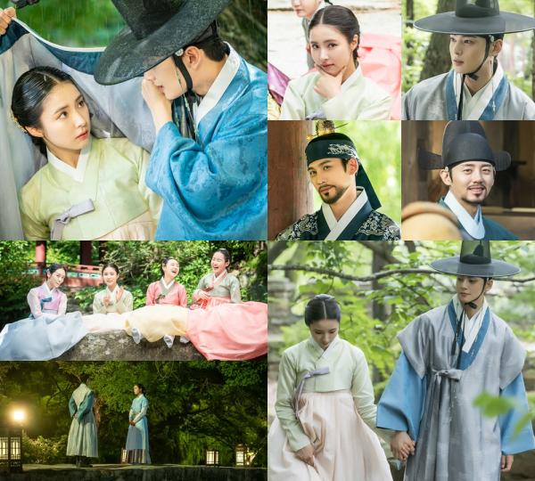 공개된 사진 속에 담긴 신세경과 차은우의 설렘 가득한 스킨십이 시선을 강탈한다. 소나기에 해령이 걱정돼 달려온 이림, 그리고 두루마기 속에서 눈빛을 나누는 두 남녀의 모습은 한여름의 풋풋하고 청량한 로맨틱함을 200% 이상 담았다는 호평을 받았다.