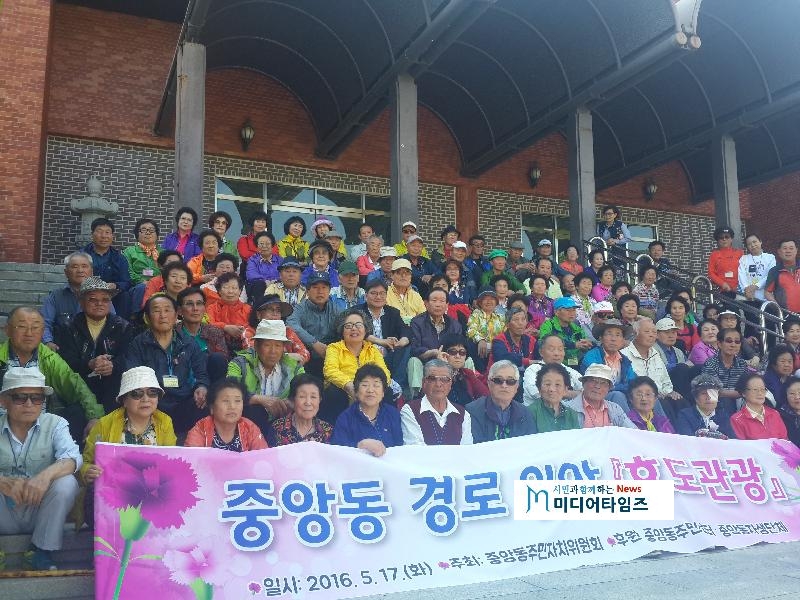 경로위안 효도관광은 경제적인 어려움과 건강으로 인해 혼자 여행하기 어려운 어르신들을 위해 매년 중앙동주민자치위원회(위원장 유학모)가 주관하고 각급 자생단체 및 관내 후원자들의 도움으로 추진하고 있는 행사로, 효도관광에 참석하신 어르신들은 봉사자의 도움을 받아 부곡하와이에서 온천욕을 한 후 식물원과 그랜드쇼를 관람하며 즐거운 시간을 보냈다.