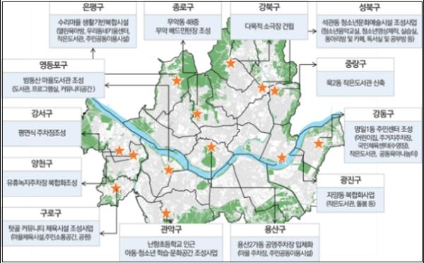 이에 따라 지난 7월 29일에는 서울시 선정위원회를 개최하여 13개소 시범사업 대상지를 확정했다. 관악구의 경우 난향초등학교 인근지역이 대상지로 선정되었는데, 이곳에는 2021년까지 지상3층, 연면적 300m2 규모의 아동·청소년 학습·문화공간이 확충되며, 여기에 소요되는 약 20억 원 규모의 공사비는 전액 시비로 지원될 예정이다.