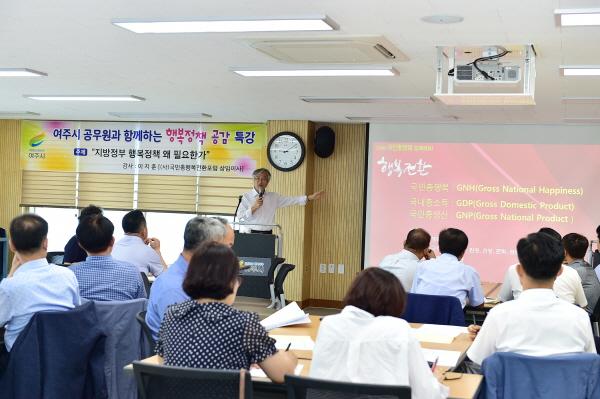 이번 교육은 여주시 간부공무원 50여명이 참석한 가운데 “지방정부 행복정책 왜 필요한가?”라는 주제로 국민총행복전환포럼 이지훈 상임이사를 초빙해 진행됐다.