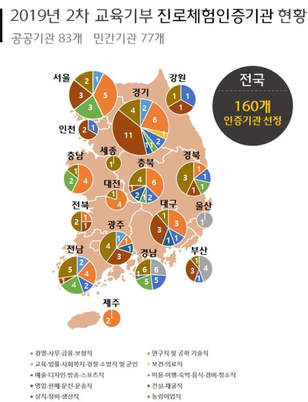 교육부와 대한상공회의소는 20일에 2019년 제2차 교육기부 진로체험 인증기관 160개를 선정하여 발표했다.