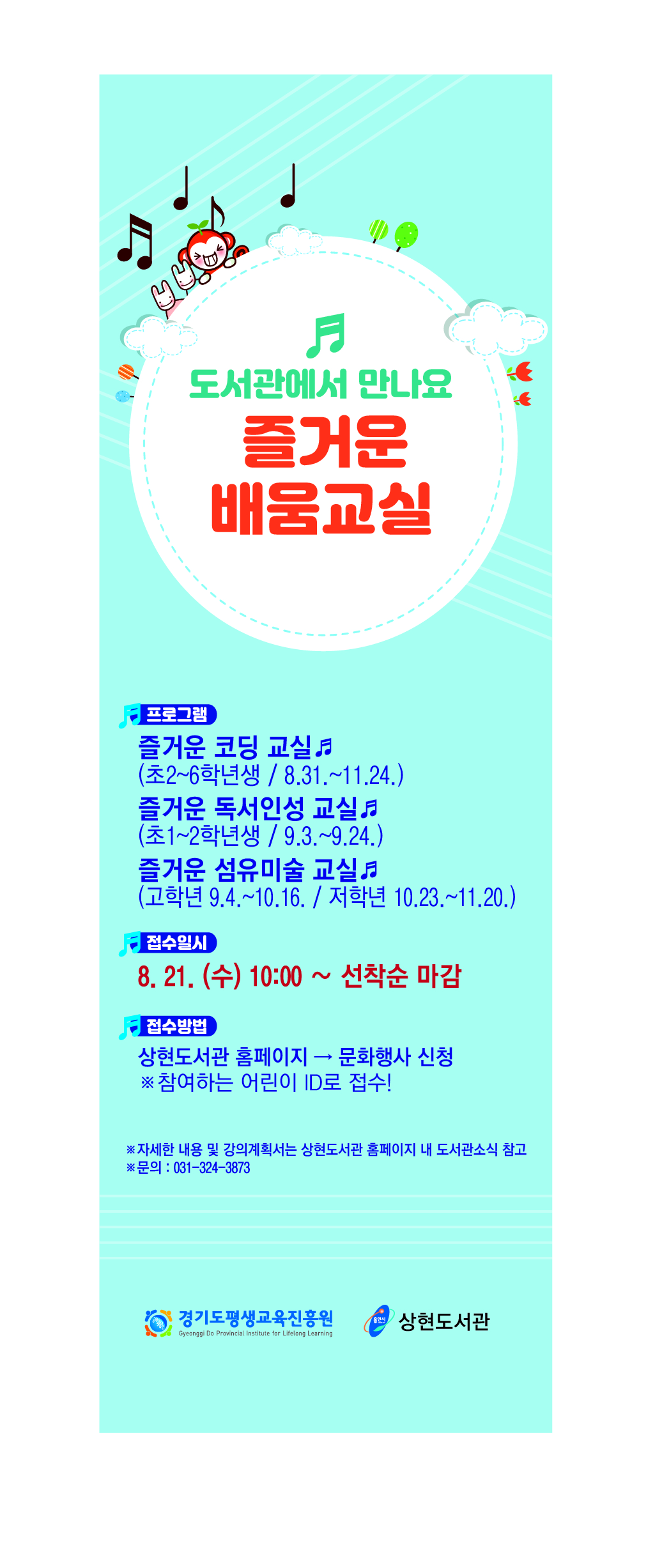 자세한 문의 사항은 상현도서관으로 전화하면 된다.