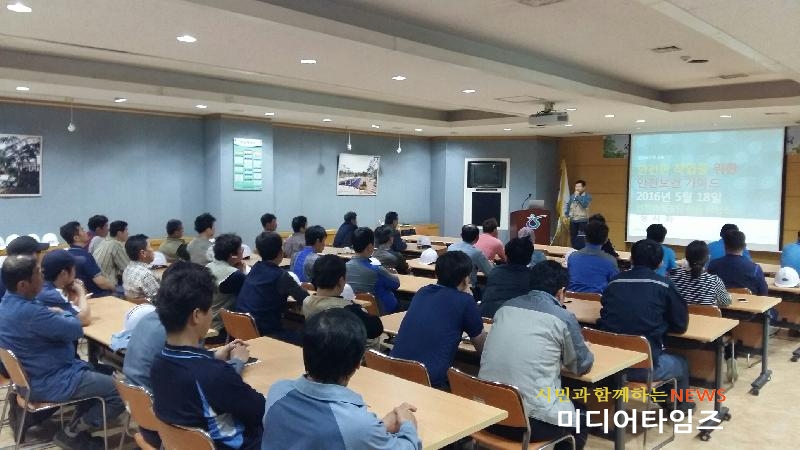 [미디어타임즈=신정식 기자] 인천환경공단(이사장 이상익) 청라사업소는 ‘2016년 상반기 정기정비’ 기간 동안 무재해 기원 및 안전의식 고취를 위한 특별안전교육을 18일 실시했다.