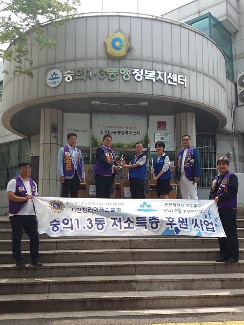 인천시 미추홀구 숭의1,3동 행정복지센터는 지난 19일 국제라이온스협회 354-F지구 제3지역 서인천라이온스클럽이 야광지팡이 50개, 선풍기 8대 등 100여만원 상당 후원품을 기탁했다고 20일 밝혔다.