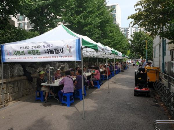 부평구 갈산2동 행정복지센터는 지난 19일 센터에서 관내 어르신 300여 명을 초청해 짜장면 나눔 행사를 가졌다.