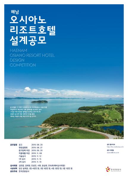 한국관광공사가 해남 오시아노 관광단지에 리조트호텔 건립을 위한 설계 공모를 시작한다.
