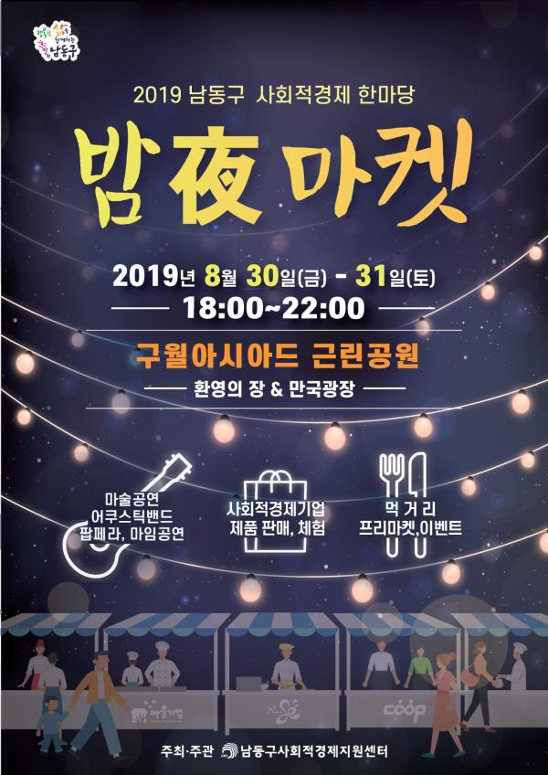인천 남동구가 사회적경제 가치에 대한 홍보와 사회적경제기업 판로개척 지원을 위한 ‘2019년 사회적경제 한마당 밤야 마켓’을 오는 30일부터 이틀간 구월아시아드 근린공원에서 개최한다.