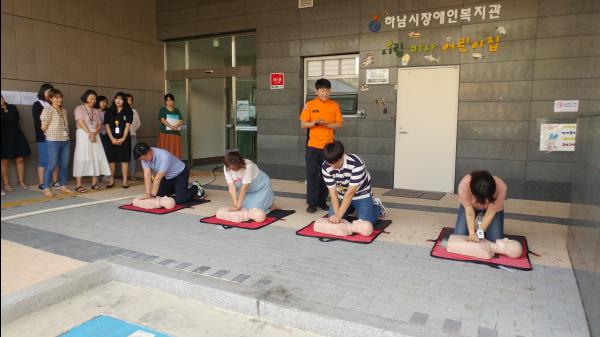 하남시장애인복지관에서 복지관 이용자 및 종사자 대상 민방위 훈련 실시 및 재난상황 대피요령 및 응급처치 강의