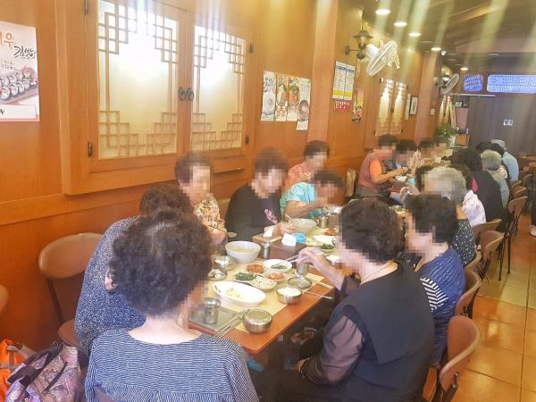 이날 김밥천국에서는 시원한 콩나물국을 비롯해 두부조림, 무들깨볶음, 샐러드, 미역줄기볶음 등 어르신들이 좋아하는 다양한 반찬을 한상 가득 내어 맞이했고, 어르신들도 정성껏 마련된 음식을 먹으며 즐거운 시간을 보냈다.