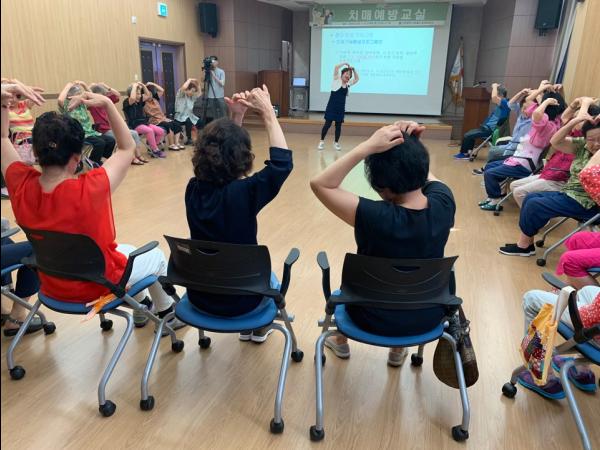치매예방교실은 치매예방체조와 인지향상 레크리에이션, 노래교실 등 뇌기능 활성화에 도움을 주는 내용으로 구성돼있다.