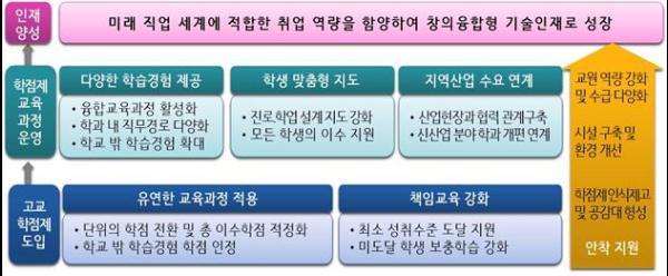 마이스터고에 학점제를 도입함으로써 신산업 분야 등에 필요한 역량을 함양할 수 있는 과목 선택과 모든 학생들에게 일정 수준 이상의 성취수준을 보장할 수 있는 책임교육이 가능하게 된다.