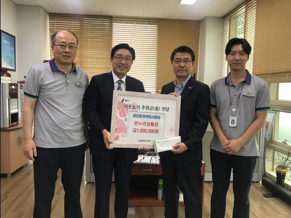 용인시 기흥구 신갈동은 21일 도로교통공단과 용인운전면허시험장에서 온누리상품권 100매를 기탁했다고 밝혔다.