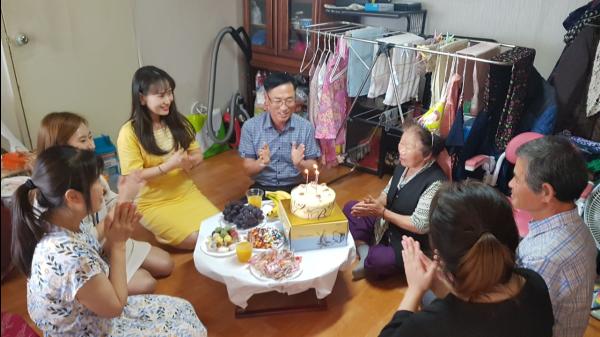 이날 생일상을 받은 정 모 어르신은 “무더운 날씨에 생각지도 않았던 분들이 가족처럼 찾아와 생일을 축하해줘 감사하다”고 말했다.