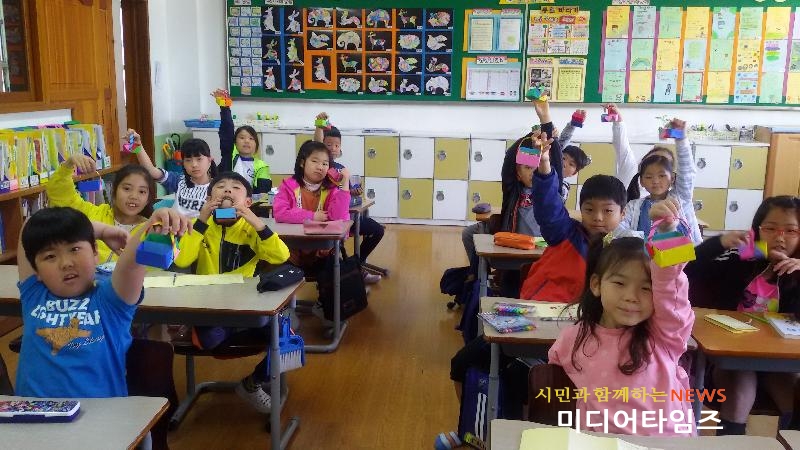 [미디어타임즈 = 최귀복 기자] 거제중앙초등학교(교장 김기태)는 지난 5월 16일(월), 17일(화) 양일간 3학년 학생 198명을 대상으로 1시간 동안 종이접기 수업을 실시했다. 이 수업은 거제교육지원청에서 지원하고 관리하는 재능기부자들 중 종이접기 재능기부자들 (주미숙, 최금주, 제영미 3명)에 의해 진행되었다.