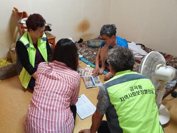 금곡동 지역사회보장협의체는 지난 2월부터 부양의무자가 없는 독거노인, 질병으로 근로능력이 없는 1인 중·장년 가구, 1인 중증 장애인 전수 가정방문을 통해 고독사 위험이 있는 고위험군 15가구를 선별하여 정기적인 모니터링을 추진해 왔으며, 모니터링을 통해 대상자에게 필요한 여름철 후원물품을 직접 발굴, 배부하는 시간을 가졌다.