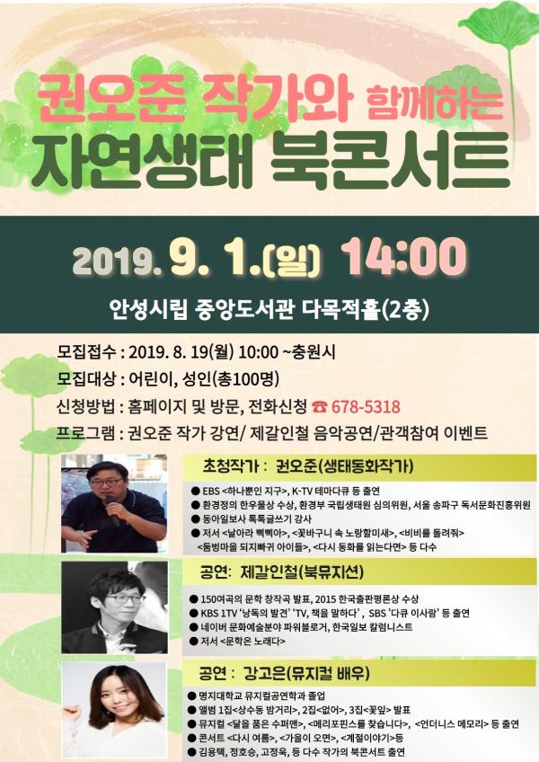9월 1일 오후2시 도서관 2층 다목적홀에서 ‘권오준 작가와 함께하는 자연생태 북콘서트’ 공연이 펼쳐진다.