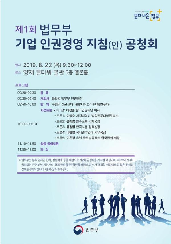법무부,‘기업 인권경영 지침’안에 대한 제1회 공청회 개최