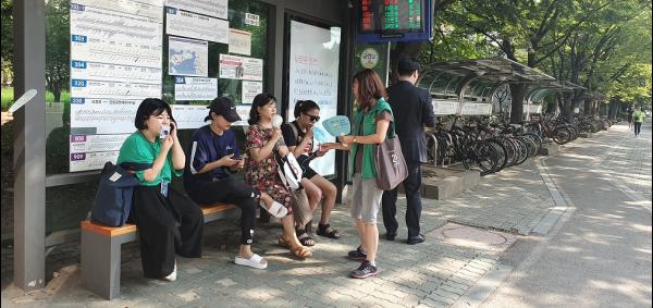 새마을지도자들은 지나가는 시민들에게 절전과 관련된 홍보용 손부채 1천개를 나눠주며 에너지절약 실천운동 동참을 당부했다.