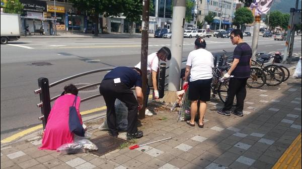 작전2동 통장자율회, 쾌적한 보행환경 조성을 위한 잡풀제거